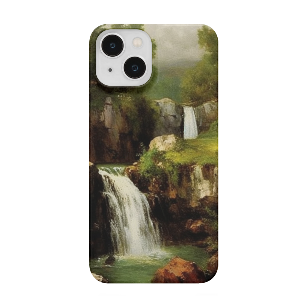 次に、「滝の風景」。このデザインは、勢いよく流れ落ちる滝とその周囲の自然が描かれており、力強さと美しさを兼ね備えています。リアリズムの特徴である、自然の細部までを正確に表現する技術が活かされています。